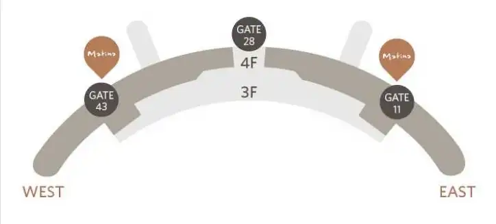 | 1터미널 마티나동편 게이트 11번 마티나서편 게이트 43번 |