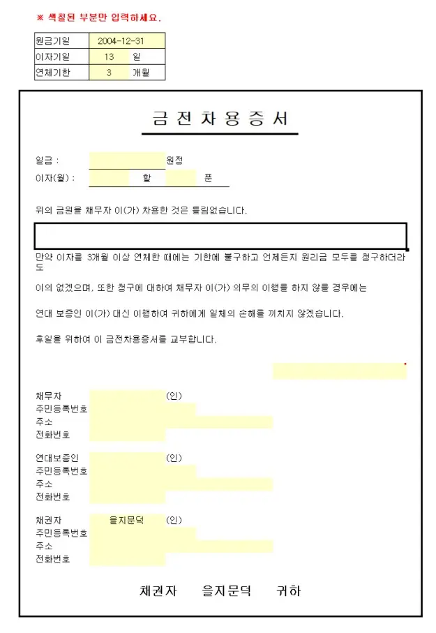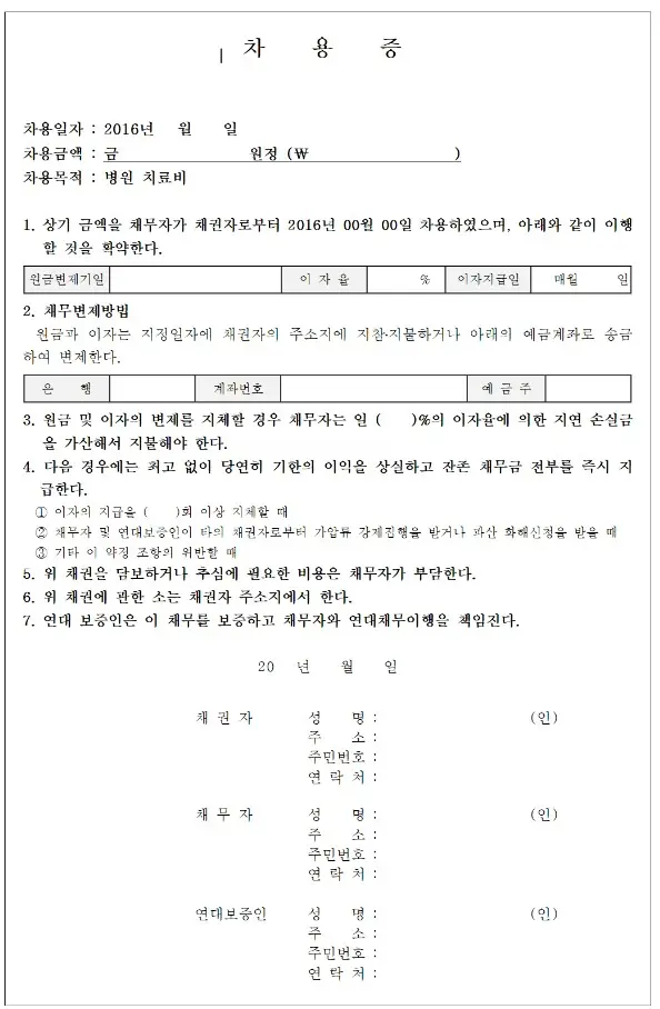 2번 차용증 양식입니다
