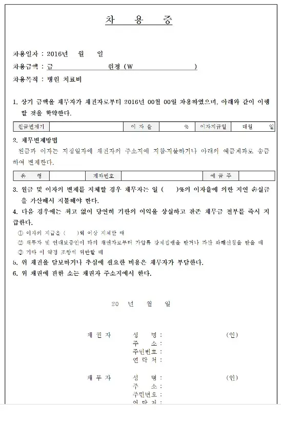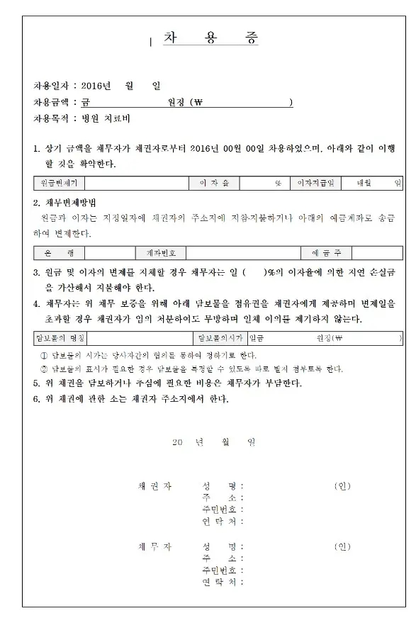 5번 연대차용증 양식